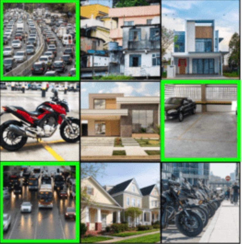 No Captcha abaixo o usuário deveria ter assinalado em verde todas imagens que continham carros.
